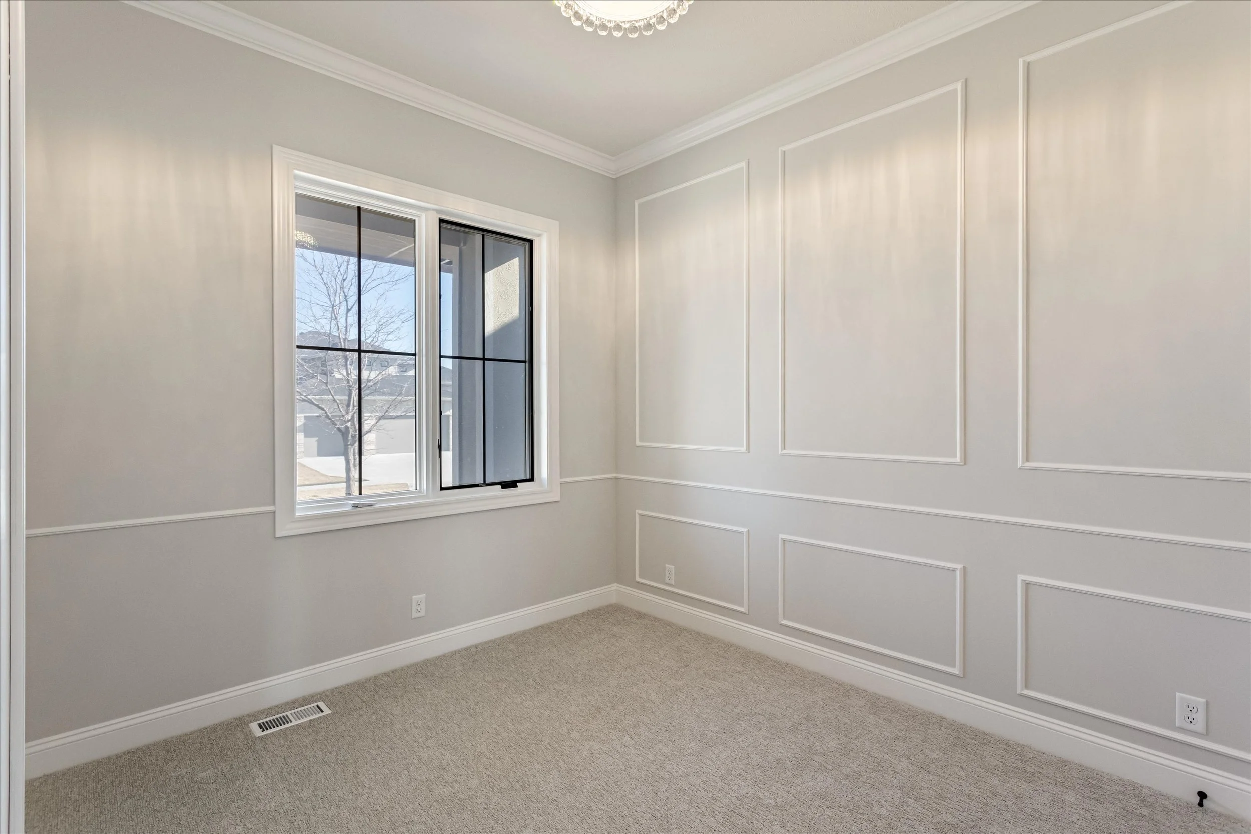 This awe-inspiring french modern inspired two story home features huge Pella windows and custom finishes throughout. Walk in to the home from the garage and you’ll find a generous drop-zone, walkthrough to kitchen, and a main level bedroom / office flex space. The quartz countertops, glass backsplash, and black stainless steel appliances create offer sleek finishes that will impress all who enter. Upstairs, the generous master suite features separate oversized double vanities, makeup area, custom tile walk-in shower, and huge closet. A clothes shoot with cabinet door from master bathroom offers easy access to second level laundry area. Three additional bedrooms, and an additional bathroom with dual vanities and private toilet/bath area make the second floor function match the home’s beautiful form. Basement finish includes bed, bath, bar.